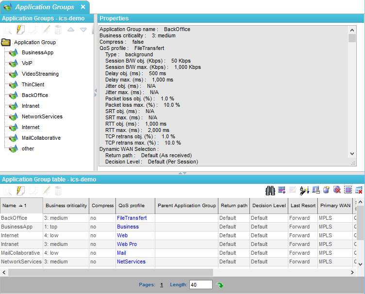 QoS profile: the QoS profile that will apply to this AG (the QoS profile contains the Type of traffic, the Bandwidth objective and maximum values, the D/J/L, RTT, SRT and TCP retransmit objective and maximum values), |