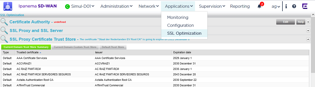 From the SD-WAN Orchestrator main menu, select Applications -> SSL Optimization.