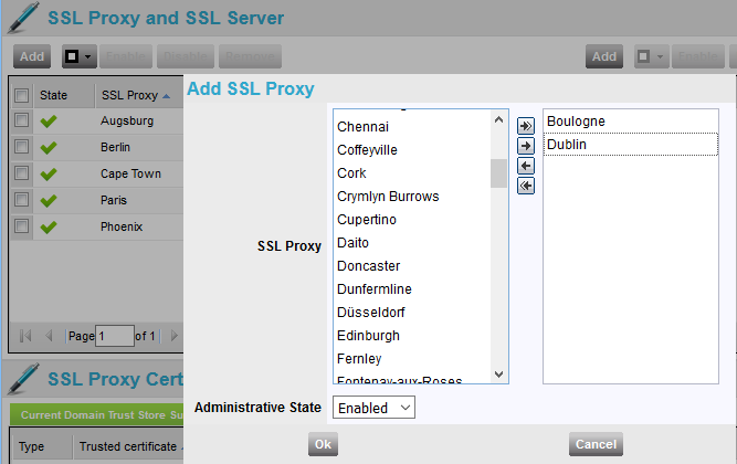 Selecting SSL proxy enabled Sites and SSL Servers