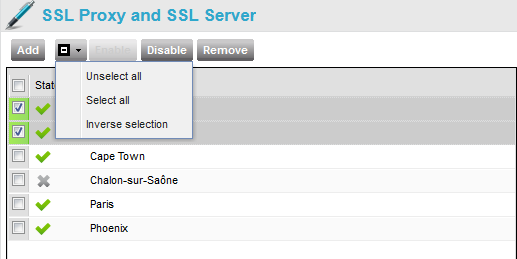 The left part of the frame is used to select the SSL proxies: